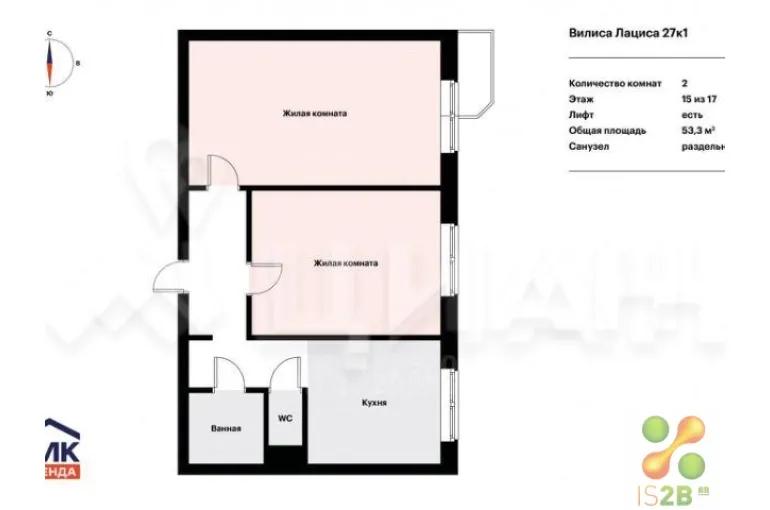 | Комнат в квартире | 2 |