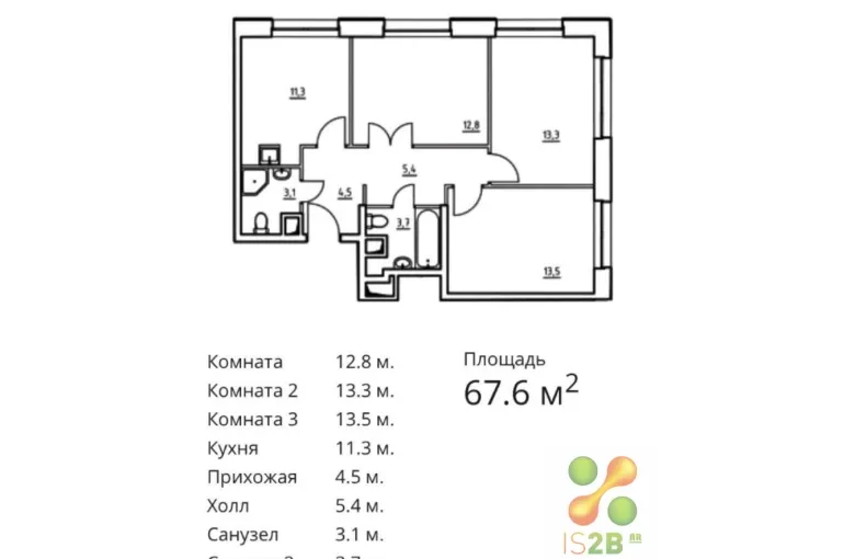 | Площадь, кв.м. | 67.6 |