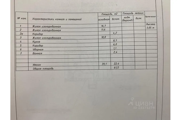 | Площадь, кв.м. | 61 |