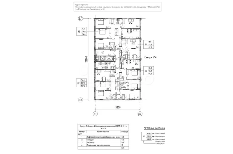 Лот № 4132 4-к. квартира, 134 м², 13/13 эт. продаётся в Москве. . ЖК Настоящее, лучшая квартира, с видом на внутренние дворы и пентхаусы с террасами, высота потолков именно этой квартиры 3,5 застройщик предлагает такую же этажом ниже с обычными потолками 3 метра на 3-ем этаже за 66,5 млн., ), документы готовы| Сведения о недвижимости | |