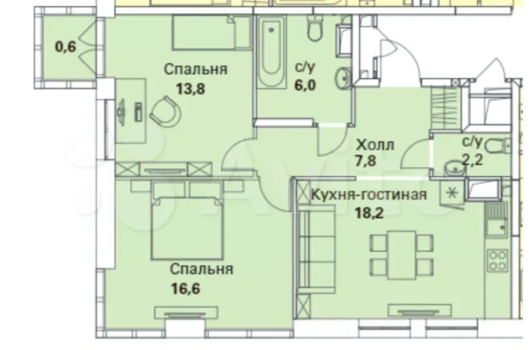 Своб. планировка, 68,2 м², 28/28 эт. на продажу в Москве | Купить квартиру | Авито